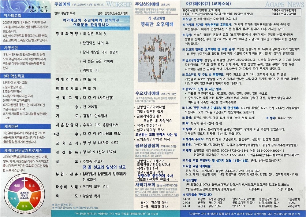 2024년 06월09일 아가페교회 소식