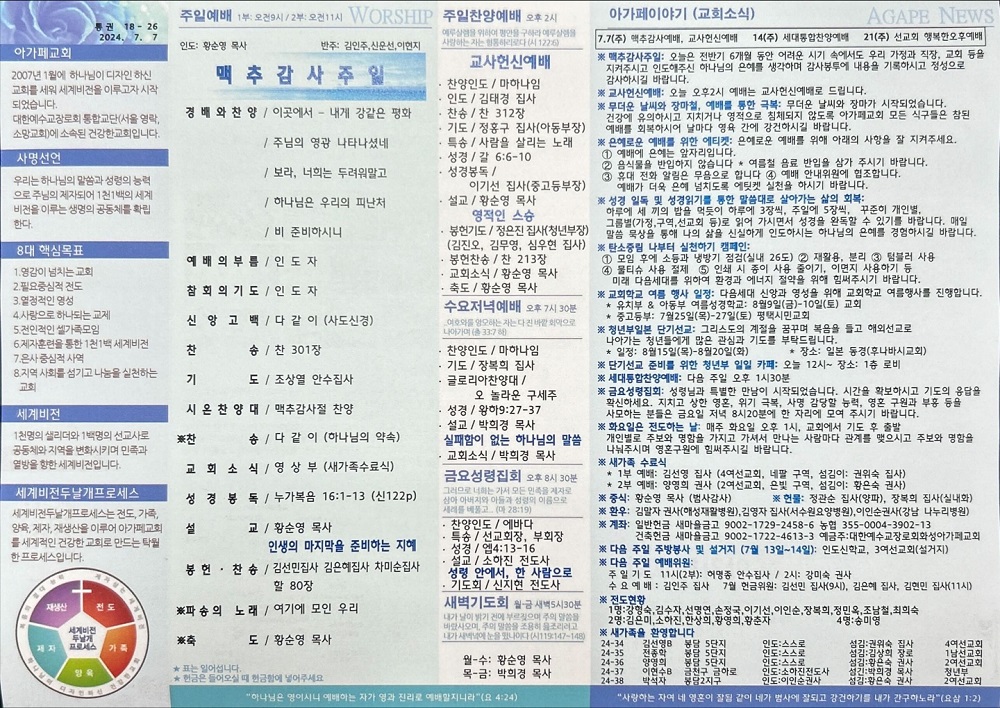 2024년 7월 7일 아가페교회 소식
