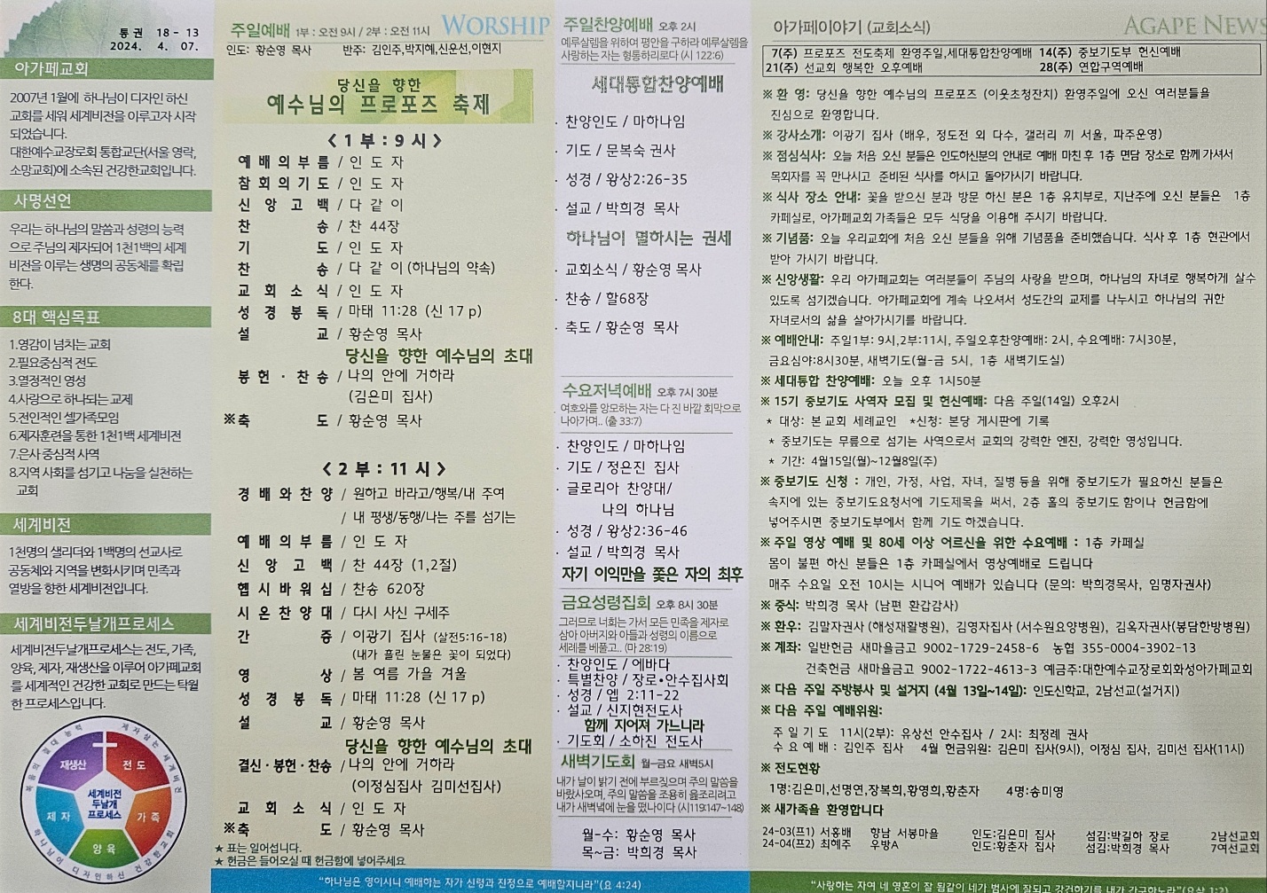 2024년 04월 07일 아가페교회 소식