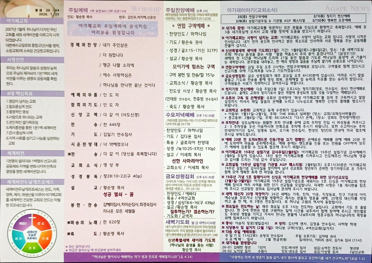 샬롬! 대한예수교장로회 아가페교회에 오신걸 진심으로 환영합니다.