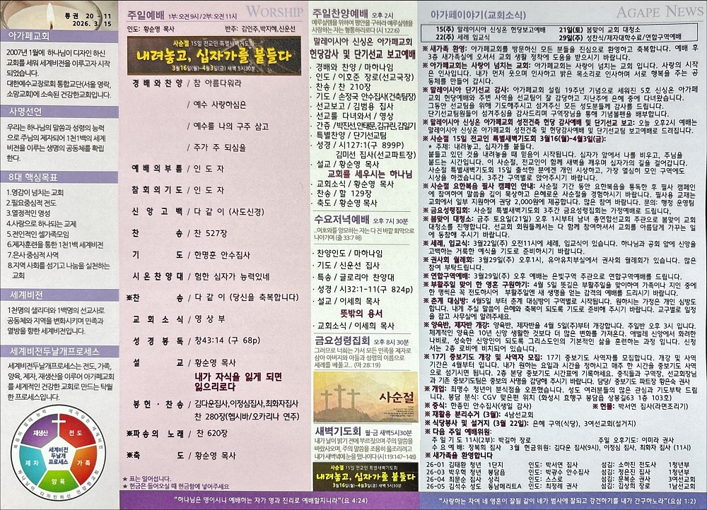샬롬! 대한예수교장로회 아가페교회에 오신걸 진심으로 환영합니다.