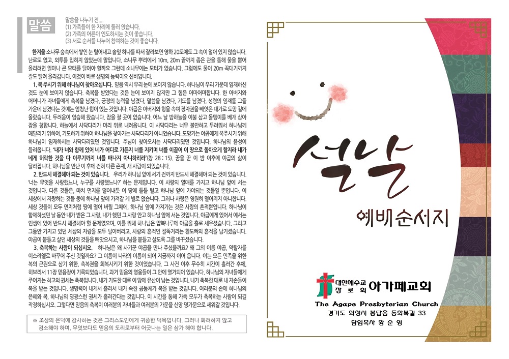 [기타자료] 2023년 설 명절 가정예배순서지
