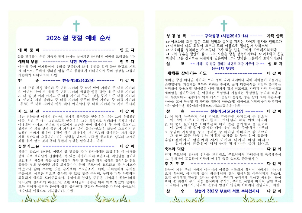[교회주보] 2026년 설 멸절 가정예배 순서지